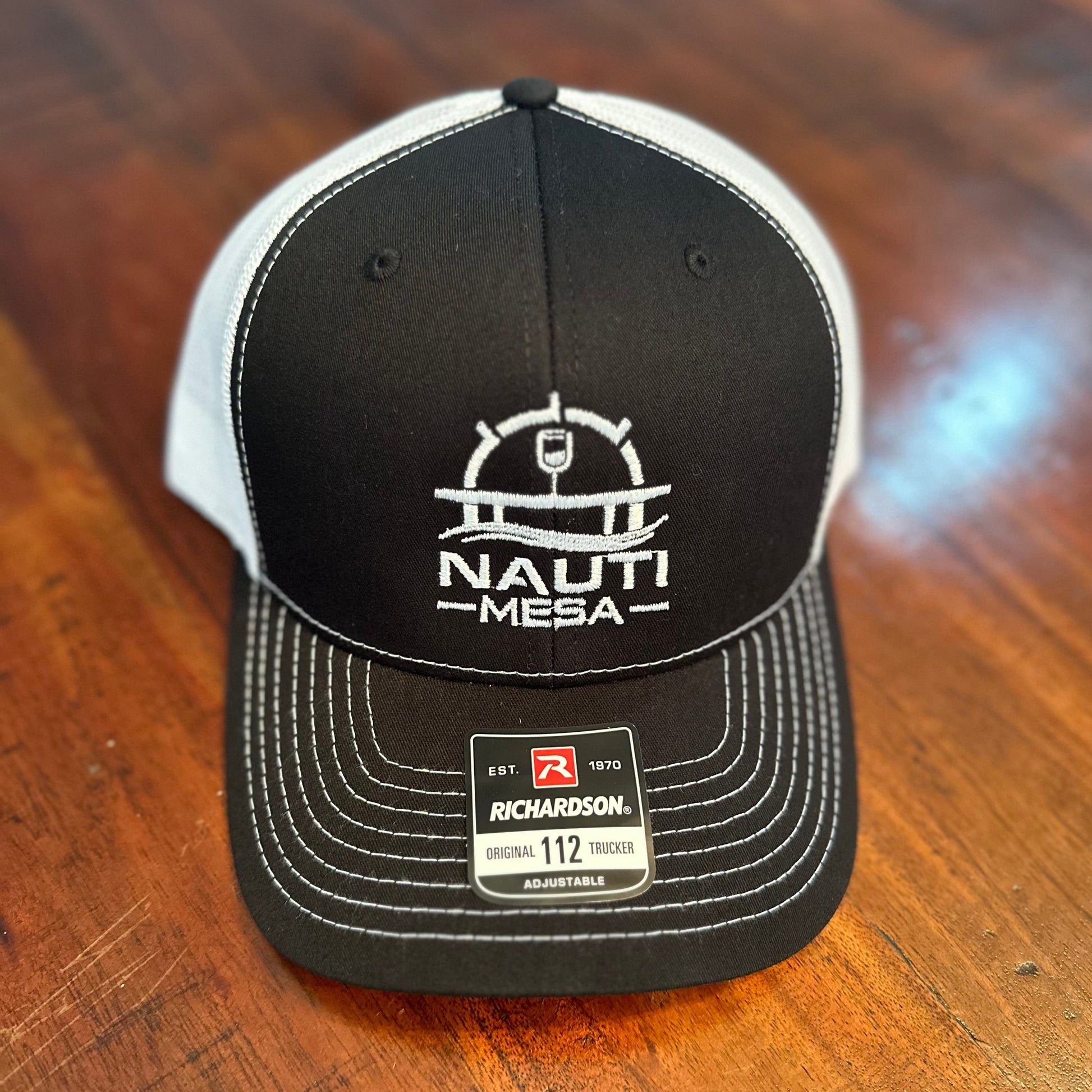 NautiMesa Richardson 112 adjustable trucker hat. Embroidered with our NatuiMesa logo. Proudly wear our swag while out on the water or around town.